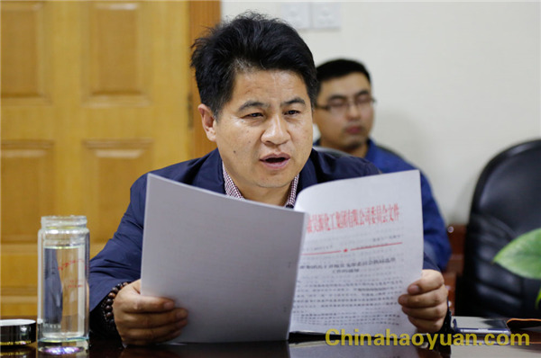 公司黨委副書記楊捷宣讀《昊源集團(tuán)關(guān)于開展黨支部委員會(huì)換屆選舉工作的通知》