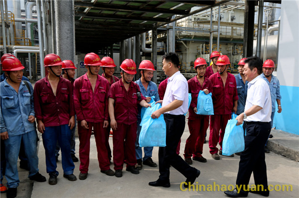 在公司航天爐系統(tǒng),吳燕一行把清涼大禮包一一發(fā)放到生產(chǎn)一線員工手中,并代表阜陽市總工會向昊源公司高溫期間堅守崗位一線員工表示慰問,叮囑大家在保證安全生產(chǎn)的同時,注意做好個人防暑降溫、保重身體。公司副總經(jīng)理、工會主席高玉磊代表昊源公司全體員工感謝阜陽市總工會對昊源公司的關(guān)心,昊源公司全體員工將繼續(xù)努力,為阜陽市經(jīng)濟發(fā)展做出更大貢獻。