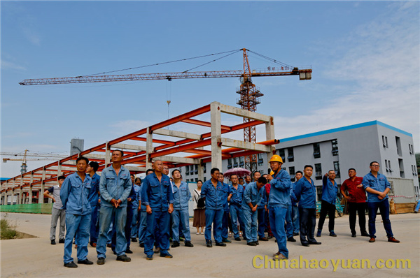 在園區(qū)項(xiàng)目建設(shè)現(xiàn)場(chǎng),公司副總經(jīng)理高明林、總經(jīng)理助理張超分別介紹了園區(qū)項(xiàng)目規(guī)劃、一期項(xiàng)目建設(shè)內(nèi)容、當(dāng)前項(xiàng)目建設(shè)進(jìn)度等。目前,園區(qū)項(xiàng)目正在緊張施工之中。所有工段基本土建結(jié)束,已全面轉(zhuǎn)入設(shè)備安裝階段。大家一邊走、一邊看、一邊聽,眼前拔地而起的一排排、一座座雄偉建筑讓人震撼,親身體會(huì)到昊源的發(fā)展速度與強(qiáng)勁。同時(shí),從心里為園區(qū)項(xiàng)目建設(shè)者點(diǎn)贊,感謝他們?yōu)榱岁辉垂究焖侔l(fā)展而默默付出。