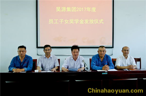 8月25日,“昊源集團2017年度員工子女獎學金發(fā)放儀式”在公司培訓中心舉行。公司領(lǐng)導高玉磊、張海生、田懷廣、吳珍漢出席儀式,儀式由工會副主席戚偉主持。